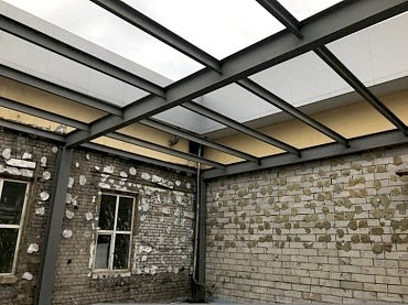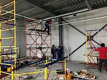 - Возведение стен, мембранной кровли;