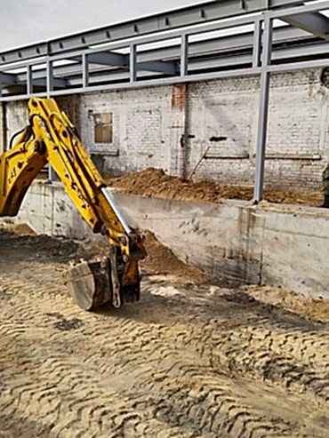 Полный комплекс строительно-монтажных работ по возведению пристроенных зданий складского назначения: земляные работы, устройство монолитного свайно-ростверкого фундамента, изготовление и монтаж стального каркаса здания, монтаж ограждающих конструкций из трехслойных панелей заводской готовности, устройство кровли и промышленных полов в зданиях.